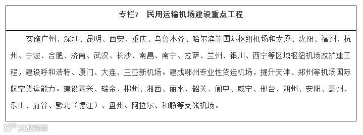 扩大航空网络覆盖。推动区域机场群协同发展,建设京津冀、长三角、粤港澳大湾区、成渝等世界级机场群。适时启动能力紧张枢纽机场改扩建工程,强化枢纽机场综合保障能力。合理加密机场布局,稳步建设支线机场和专业性货运枢纽机场,提升综合性机场货运能力和利用率。有序推进通用机场规划建设,构建区域短途运输网络,探索通用航空与低空旅游、应急救援、医疗救护、警务航空等融合发展。优化航路航线网络,加强军民航空管基础设施建设,推广应用空管新技术。