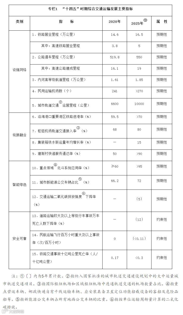 到2025年,综合交通运输基本实现一体化融合发展,智能化、绿色化取得实质性突破,综合能力、服务品质、运行效率和整体效益显著提升,交通运输发展向世界一流水平迈进。