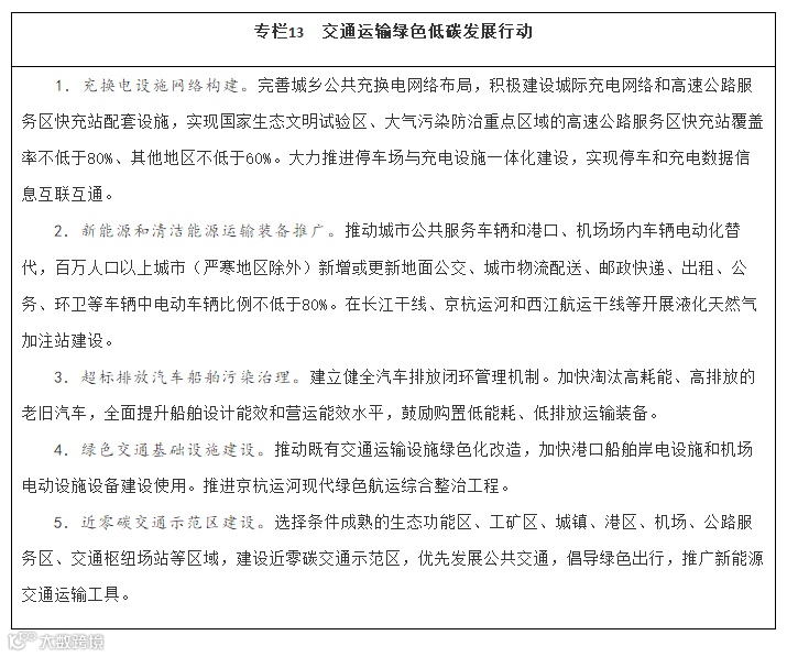 日前国务院关于印发“十四五”现代综合交通运输体系发展规划的通知,通知指出:实施交通运输绿色低碳转型行动。研究制定交通运输领域碳排放统计方法和核算规则,加强碳排放基础统计核算,建立交通运输碳排放监测平台,推动近零碳交通示范区建设。建立绿色低碳交通激励约束机制,分类完善通行管理、停车管理等措施。