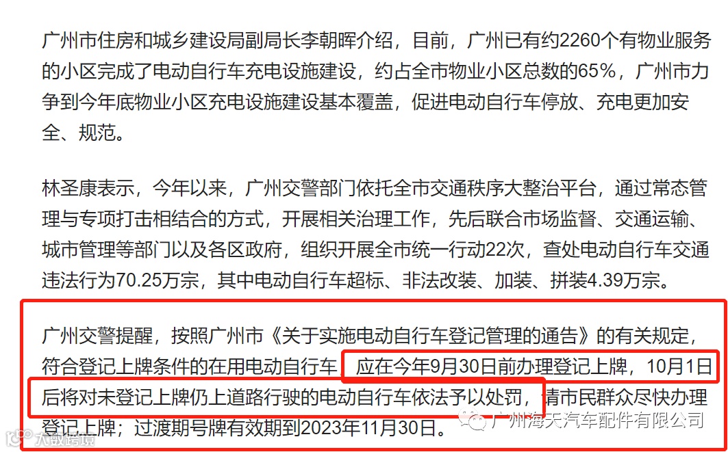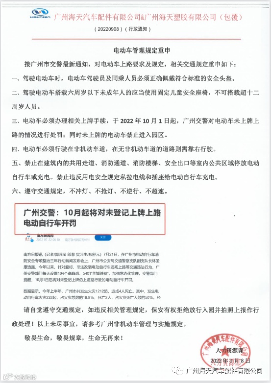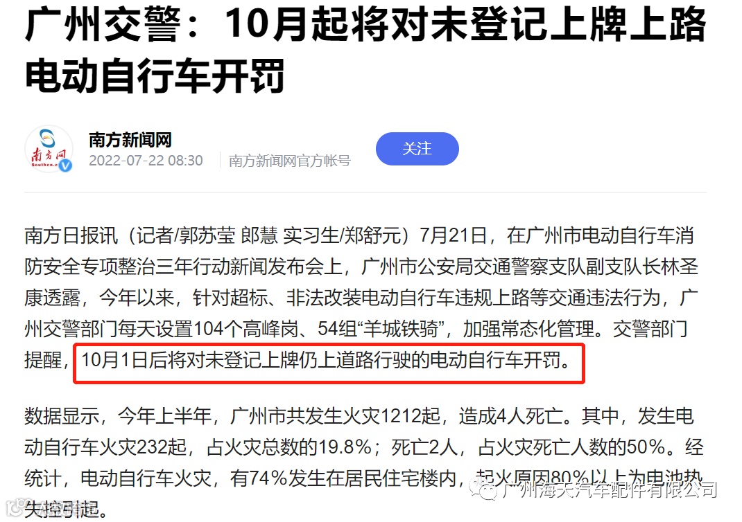广州交警新规:10月1日起,对未登记上牌上路的电动自行车开罚,衍生此规定,工厂新增规定:禁止未上牌电动自行车入园。 请您在2022年9月30日给您的爱车(电动自行车)做好登记上牌,购买新电动自行车需及时登记上牌。 |
