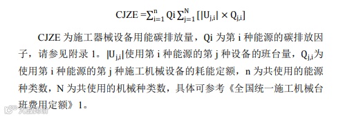 对于施工设备的用能碳排放核算,可通过统计施工器械设备的台班数量,并利用施工台班的碳排放定额进行计算,计算公式如下: