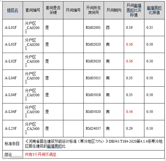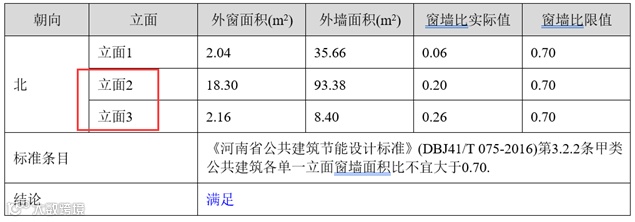 居建一般判断开间窗墙比,即判定某个朝向最不利的开间的窗墙比是否满足限值要求,需要计算该朝向所有外窗所在房间的窗墙比,取其中最差的数据作为判定对象。
