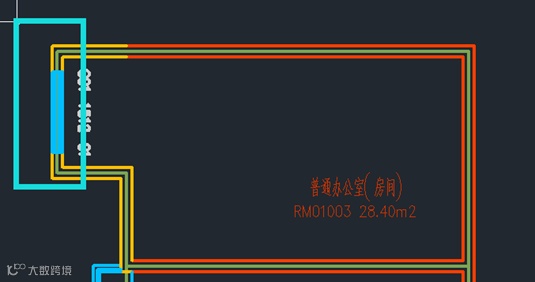 这种情况下,因为墙体属性不同,会导致墙线断开,实际参与窗墙比的墙体为外窗所依附的墙体,即下图中所示青色框中所示墙。