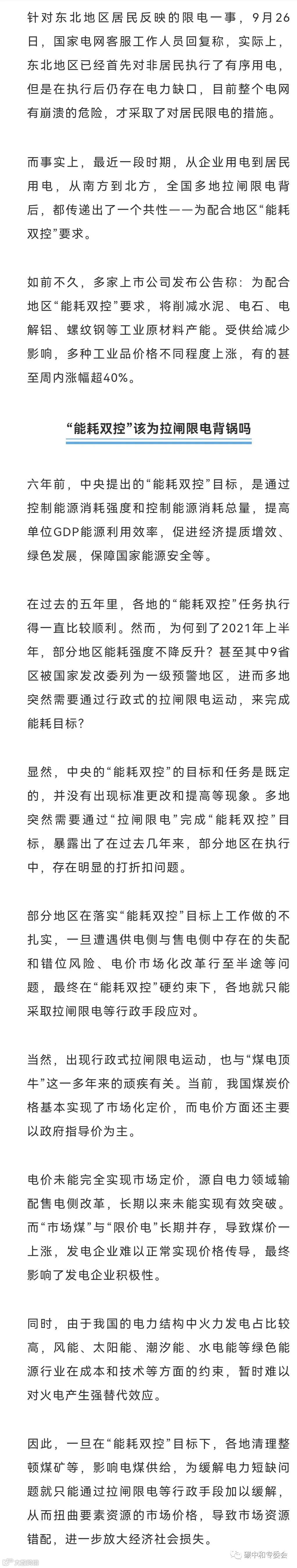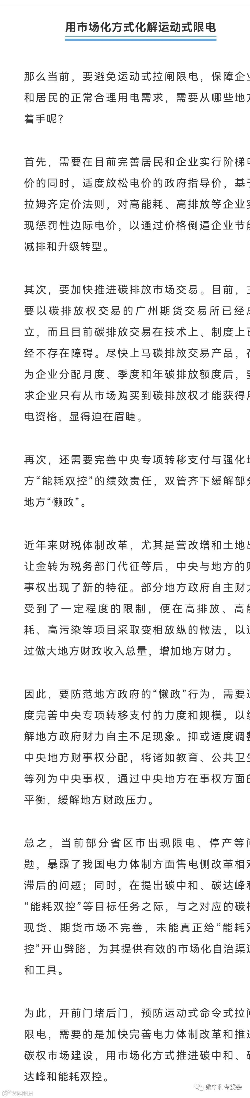 防运动式命令式拉闸限电,需要加快完善电力体制改革和推进碳权市场建设,用市场化方式推进能耗双控。