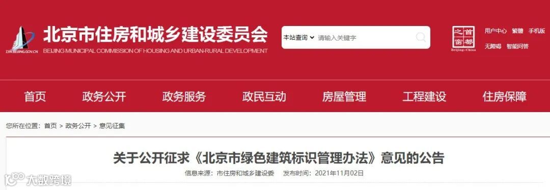 为促进绿色建筑健康有序发展,进一步规范本市绿色建筑标识管理,根据《住房和城乡建设部关于印发绿色建筑标识管理办法的通知》(建标规〔2021〕1号)和《住房和城乡建设部办公厅关于做好三星级绿色建筑标识申报工作的通知》(建办标〔2021〕23号)相关要求,结合我市绿色建筑发展现状,北京市住房和城乡建设委员会会同北京市规划和自然资源委员会起草并拟联合发布《北京市绿色建筑标识管理办法》(征求意见稿详见附件1,起草说明详见附件2),现向社会公开征求意见,欢迎社会各界提出意见建议。