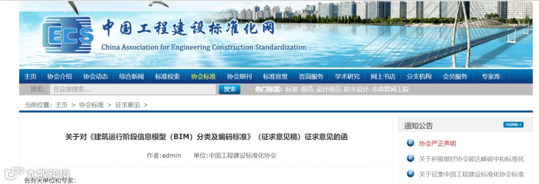 根据中国工程建设标准化协会《关于印发<2021年第一批协会标准制订、修订计划>的通知》(建标协字〔2021〕011号)的要求,由北京构力科技有限公司牵头制订的中国工程建设标准化协会准《建筑运行阶段信息模型(BIM)分类及编码标准》已完成征求意见稿。