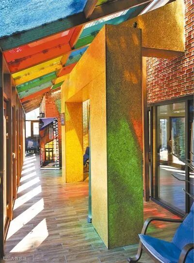 在“零舍”项目,阳光透过彩色薄膜光伏顶落在屋内墙面上,仿若波光粼粼。任军告诉记者,“零舍”安装了200片太阳能光伏瓦以及14片彩色薄膜光伏采光顶,年发电量超过7000千瓦时,能够满足屋内除新风一体机外所有电器设备的用电需求,此外太阳能热水系统还能为建筑提供热水。