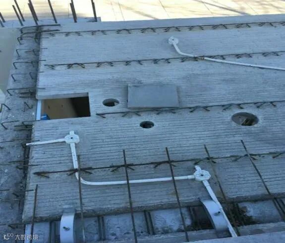 在本项目设计过程中,机电设备相关管线做到精装修深度,预制构件在工厂生产时可提供预留预埋的精度,以保证管线预埋的合理性和准确性。在工厂中,预制混凝土外墙板准确预埋电气专业线管、线盒,预制叠合楼板中准确预埋灯具线盒及开关预留孔洞,公共区域管线和传统现浇方式一致。给排水专业在各层楼板上均已预留孔洞,避免了后期对预制楼板的剔凿。各专业预埋如下图11所示。