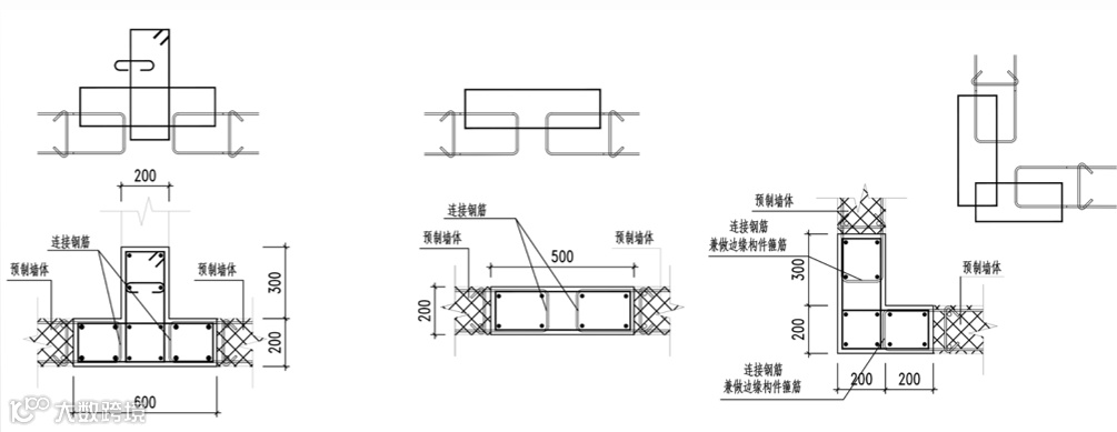 外墙采用预制混凝土外墙板与现浇相结合的体系,局部填充部分采用200厚B05级蒸压加气混凝土条板墙。