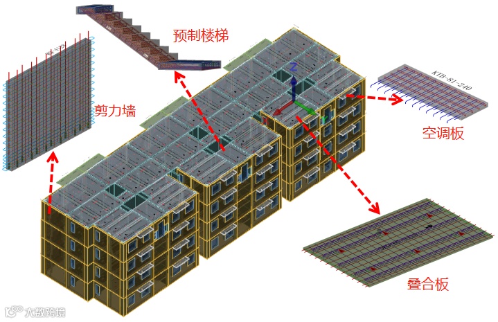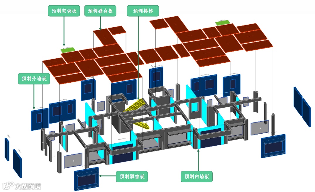 预制构件:预制外墙板、预制内墙板、预制叠合板、预制空调板、预制楼梯