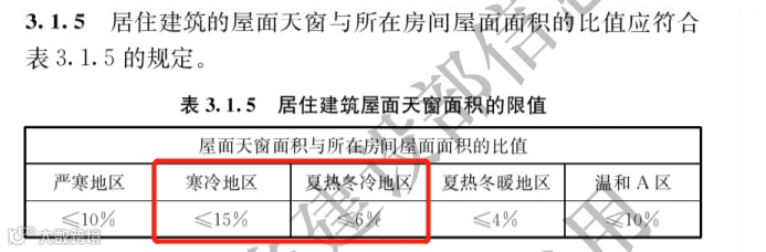 除此之外,《通用规范》新增了居建屋面天窗与房间屋面面积的比值要求,江苏地标并未明确。
