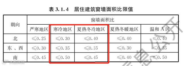 《通用规范》明确给出窗墙比的判定,但需要注意的是,目前《通用规范》中明确居住建筑按照开间窗墙比进行判定,而江苏地标采用的是朝向窗墙比进行判定。计算规则与判定方式不同,后续在规则上需要考量统一。