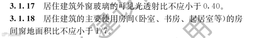 地标中会指定相应的特殊判定和要求,比如遮阳系数的计算规则、阳台遮阳的判定、外窗可开启面积的比例等,在此就不一一赘述。我们需要考虑的是《通用规范》中存在哪些特殊判定。图十六截取于《通用规范》,其中明确了居住建筑外窗的可见光透射比的要求和主要功能房间的窗地比,因此是在后续设计过程中需要考虑的。
