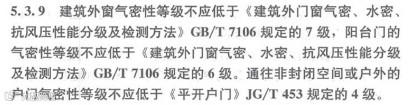 图九:《通用规范》气密性等级要求