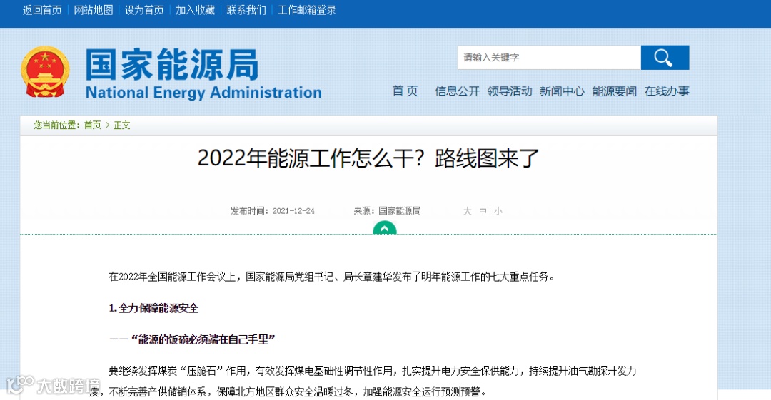 在2022年全国能源工作会议上,国家能源局党组书记、局长章建华发布了明年能源工作的七大重点任务。