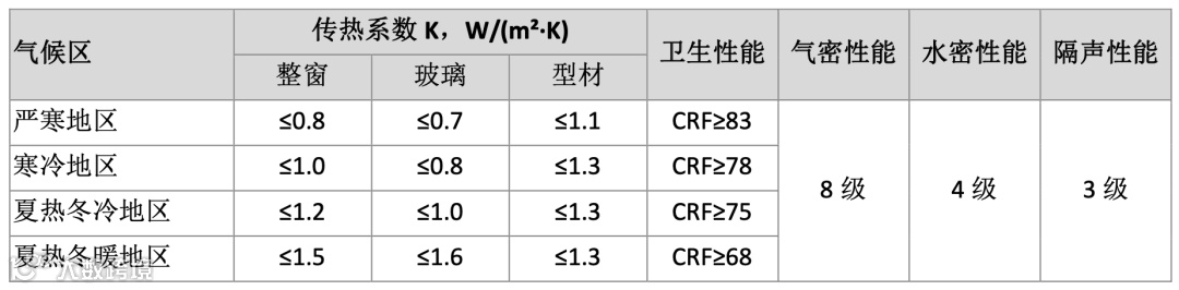 表3 建筑外门窗的性能指标要求