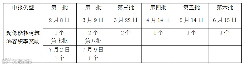 截止2021年7月9日,上海市3%容积率奖励申报评审组织共计8批,10个项目,9个住宅建筑,1个公共建筑。