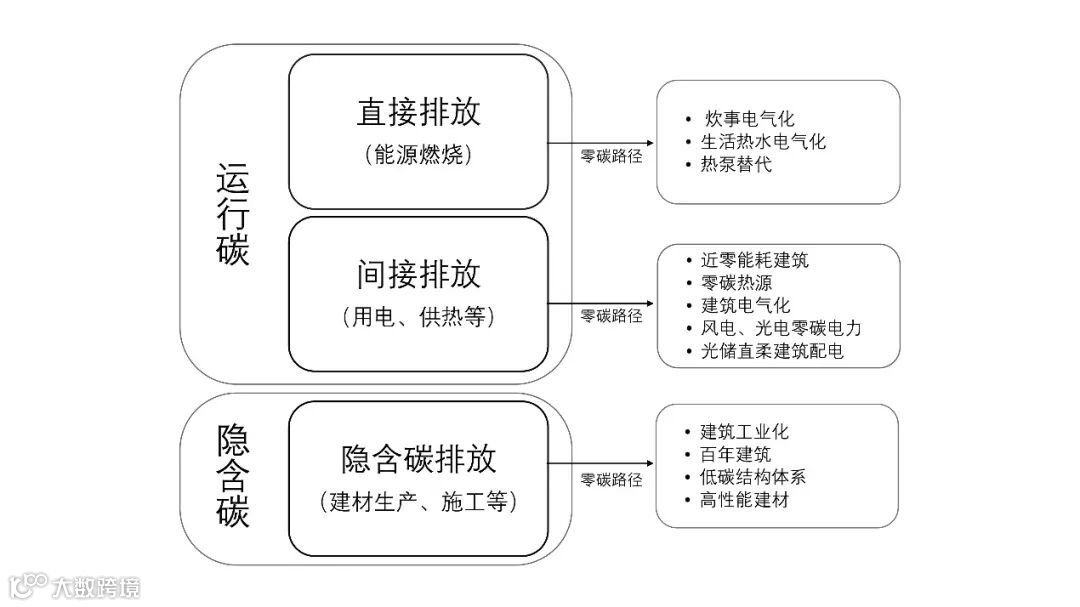 需求减量方面,可以借助超低能耗房屋减少能源需求,通过低碳、轻质、循环建材和工业化建造体系减少建材用量。 -