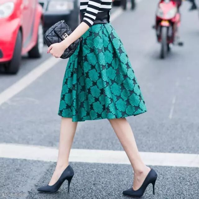 长款半裙的设计也一样,短上衣+高腰半裙,长裙也超显个子。