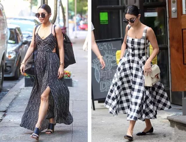 比如Vanessa Hudgens,最近的街拍里,穿的裙子清一色长裙来着,配的还都是平底鞋,你能看出来她只有155cm的身高吗?