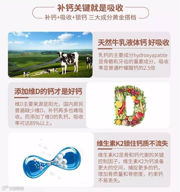 ☆补钙+吸收+锁钙,三大成分黄金搭档,真正能感受到补钙效果的产品,真正与众不同的钙。