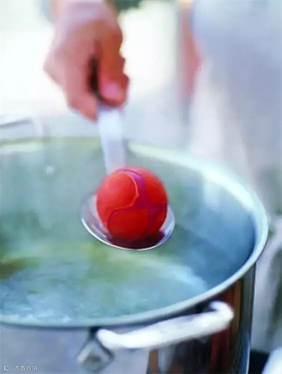 西红柿剥皮后再炒,口感更好。西红柿去蒂后,在底部划十字,用开水浸泡2分钟,放入冷水中泡一会,剥离外皮就变得超级简单咯!