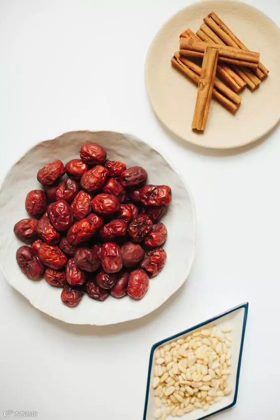 干大枣在热水中泡半个小时,再入锅熬煮,等大枣充分膨胀后,捞出来,枣皮很容易就能剥掉。