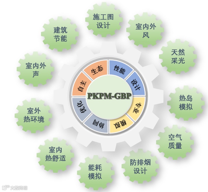 PKPM-GBP基于《绿色建筑评价标准》GB/T 50378及现行绿建地标研发而成,中国建筑科学研究院有限公司北京构力科技有限公司拥有自主知识产权,该系统包括了绿色建筑性能设计需要的全部软件模块。