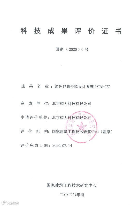 组织召开了对中国建筑科学研究院有限公司北京构力科技有限公司完成的“绿色建筑性能设计系统PKPM-GBP V3”科技成果评价会,由清华大学、同济大学、