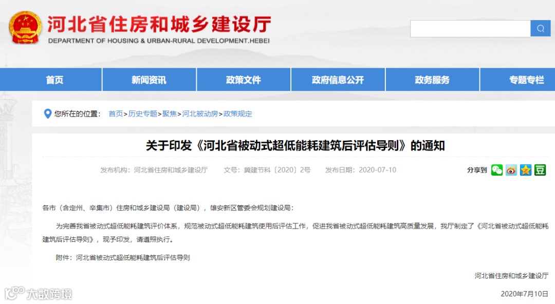 为完善我省被动式超低能耗建筑评价体系,规范被动式超低能耗建筑使用后评估工作,促进我省被动式超低能耗建筑高质量发展,我厅制定了《河北省被动式超低能耗建筑后评估导则》,现予印发,请遵照执行。