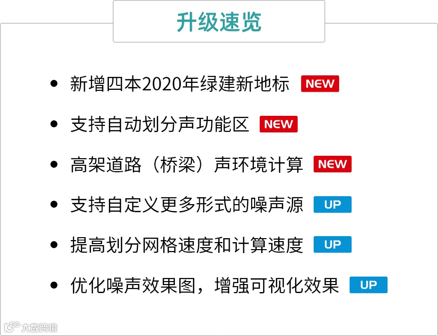 V3.2室外声环境模拟软件SoundOut全新升级版正式发布啦!新版本支持多本绿建地标的模拟要求,噪声源数据库更全面,参数设置更方便,同时软件计算内核进行了大幅优化,计算速度较上一版本提升50%以上。