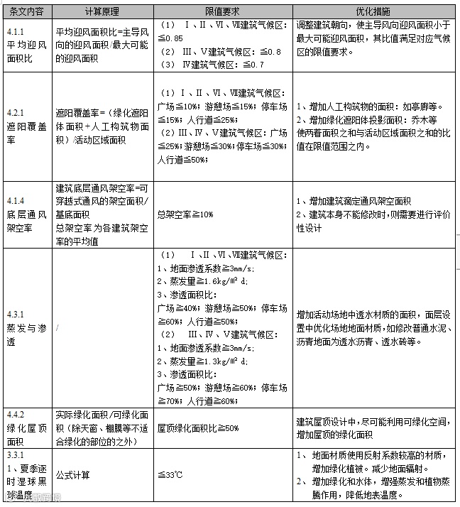 3.3.1 当进行评价性设计时,应采用逐时湿球黑球温度和平均热岛强度作为居住区热环境的设计指标,设计指标应符合下列规定: