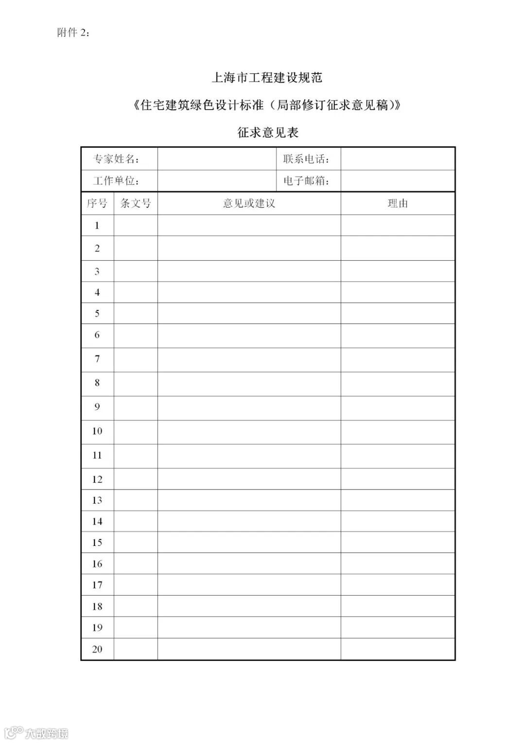 附件2:《住宅建筑绿色设计标准(局部修订征求意见稿)》征求意见表