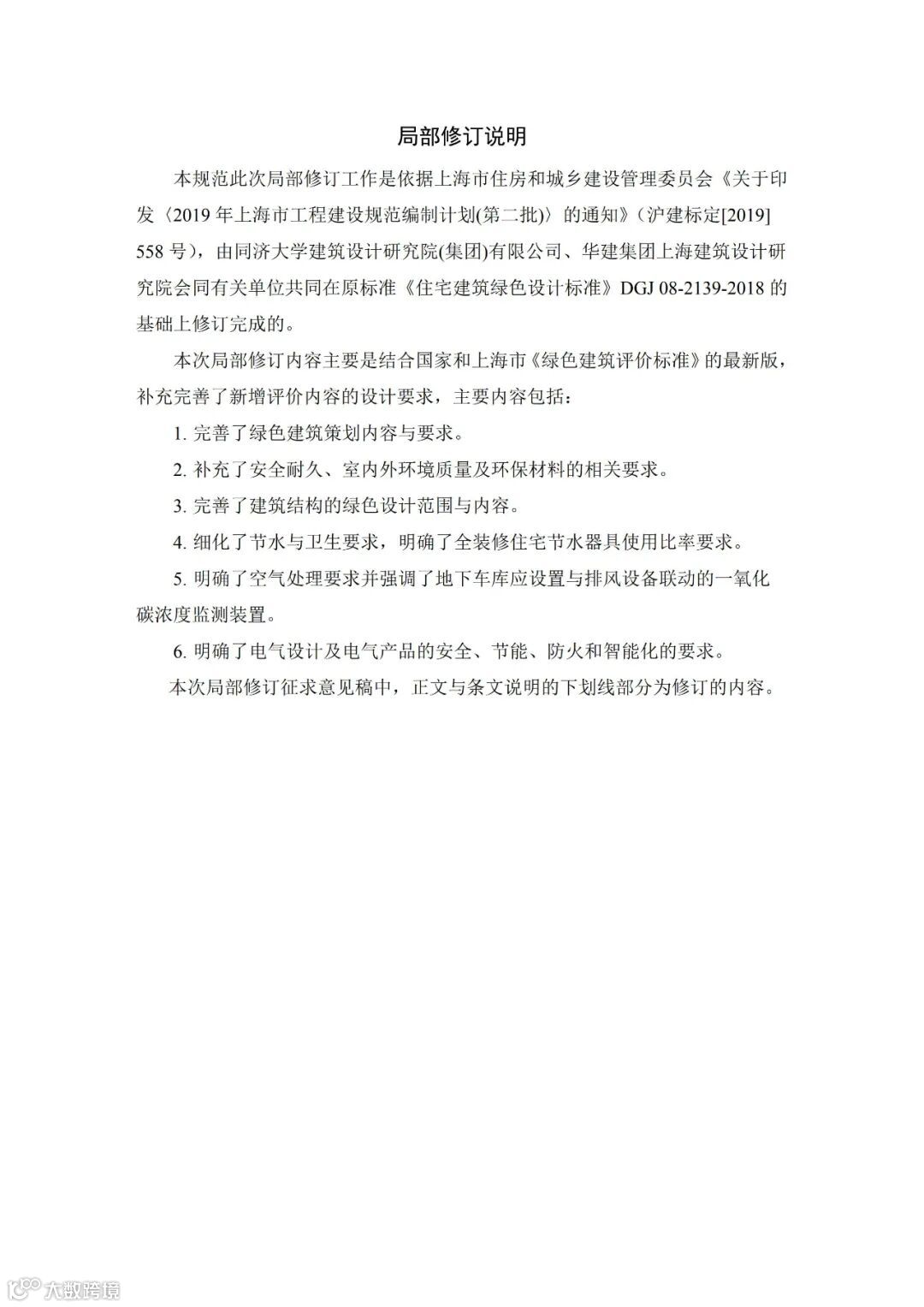 根据上海市住房和城乡建设管理委员会沪建标定[2019]558号文下达的《2019年上海市工程建设规范编制计划(第二批)》的通知,由同济大学建筑设计研究院(集团)有限公司、华建集团上海建筑设计研究院有限公司主编起草的上海市工程建设规范《住宅建筑绿色设计标准(局部修订征求意见稿)》(见附件)现征求意见,请于2020年4月6日前将意见和建议反馈主编单位同济大学建筑设计研究院(集团)有限公司。