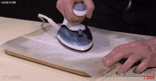 然后用熨斗开蒸汽不断摩擦