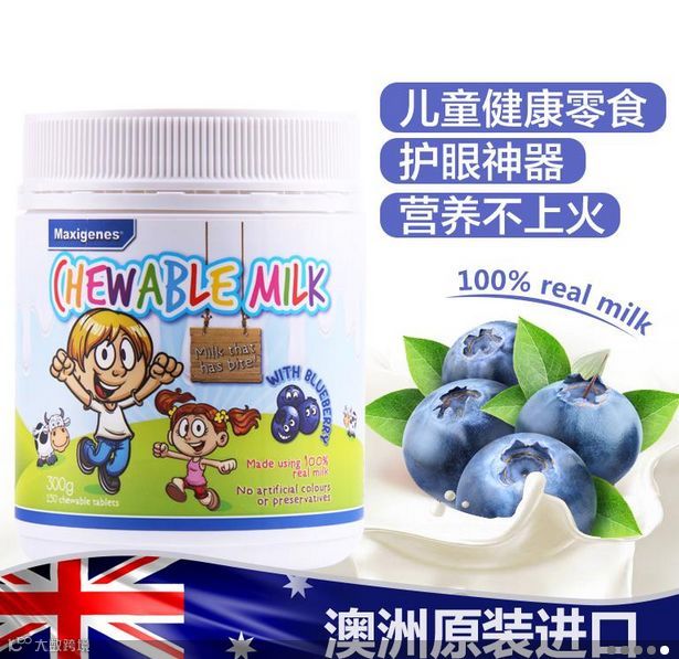 Maxigenes®美可卓蓝莓味牛奶护眼咀嚼片,由纯天然蓝莓萃取物与100%纯正高品质的澳洲牛奶组成。让您食用简单,并享受到新鲜牛奶香味与蓝莓果。100%无添加任何人造色素或防腐剂。有助于维护眼睛健康、预防视力受损,补充身体成长所需要钙质等营养,为孩子、孕妇及成人专门制定一种每一天可以食用理想的健康食品。