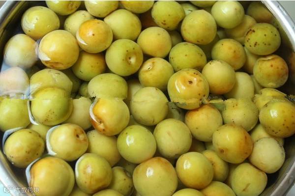 3.将浸泡好的梅子倒进沥水篮里,放置在通风处,待梅子表面水分晾干即可,如果不想浪费时间,可以用厨房纸巾将梅子的水分吸干。
