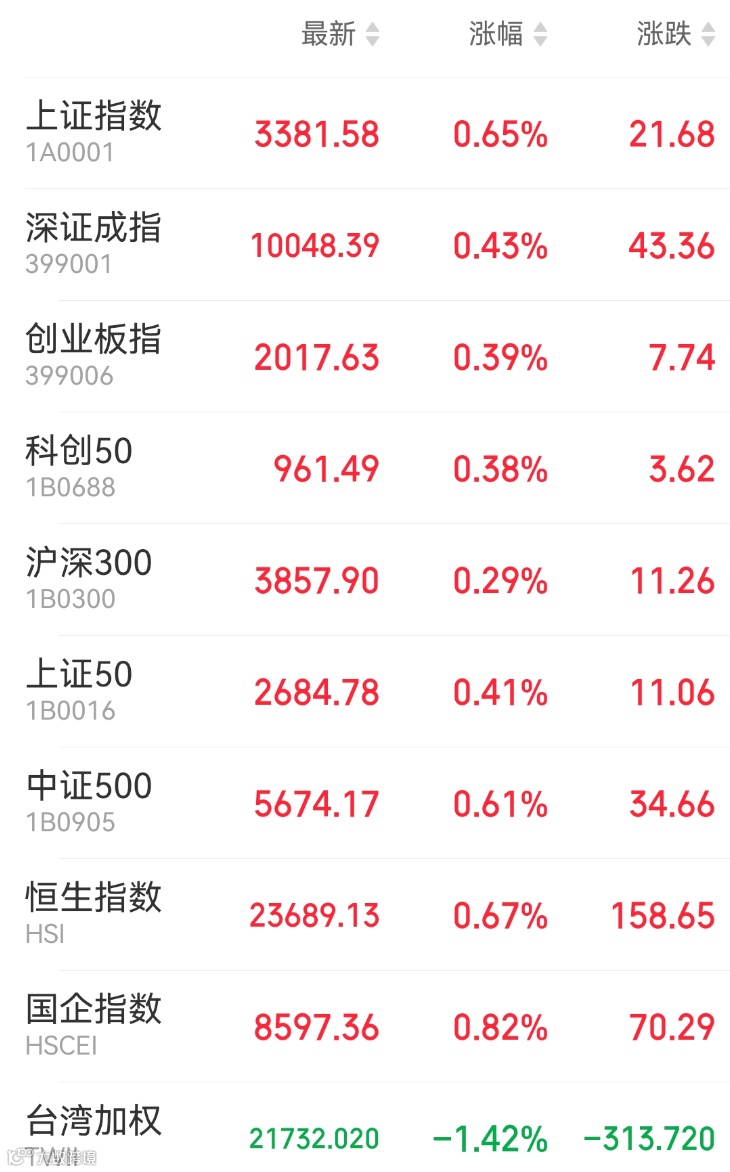 4、美股:美国三大股指全线收涨,道指涨0.89%报42581.78点,标普500指数涨0.96%报6025.17点,纳指涨0.94%报19630.97点。宣伟涨超3%,IBM涨近3%,领涨道指。万得美国科技七巨头指数涨1%,特斯拉涨超8%,创4月28日以来最大单日涨幅,脸书涨逾2%。热门中概股多数上涨,理想汽车涨近8%,叮咚买菜涨超7%。美国空袭伊朗核设施后,伊朗作出的反应比市场所担忧的要克制和温和得多,增强了投资者对中东局势可能缓和的预期。