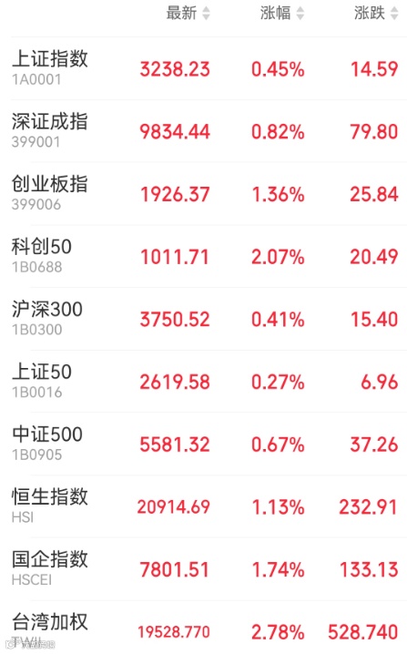 3、黄金:国际贵金属期货大幅收涨,COMEX黄金期货涨2.44%报3254.9美元/盎司,刷新历史新高,周涨7.23%,COMEX白银期货涨4.67%报32.195美元/盎司,周涨10.14%。