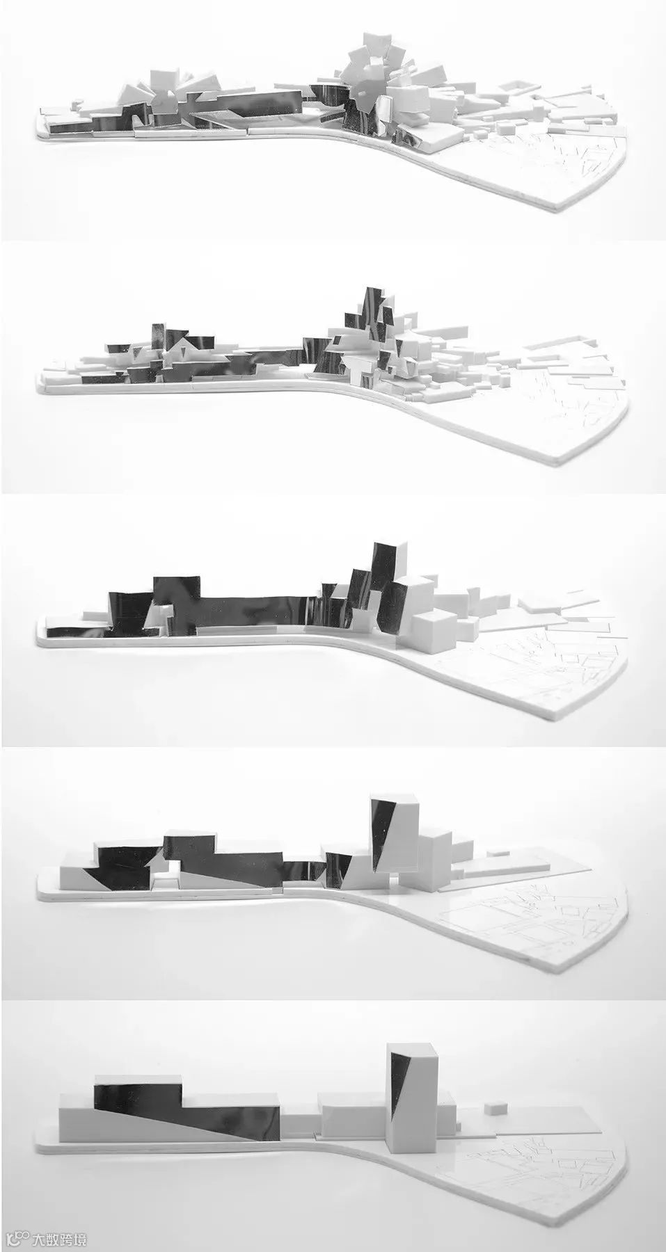 设计师规划了多个高度不一的楔形构筑物