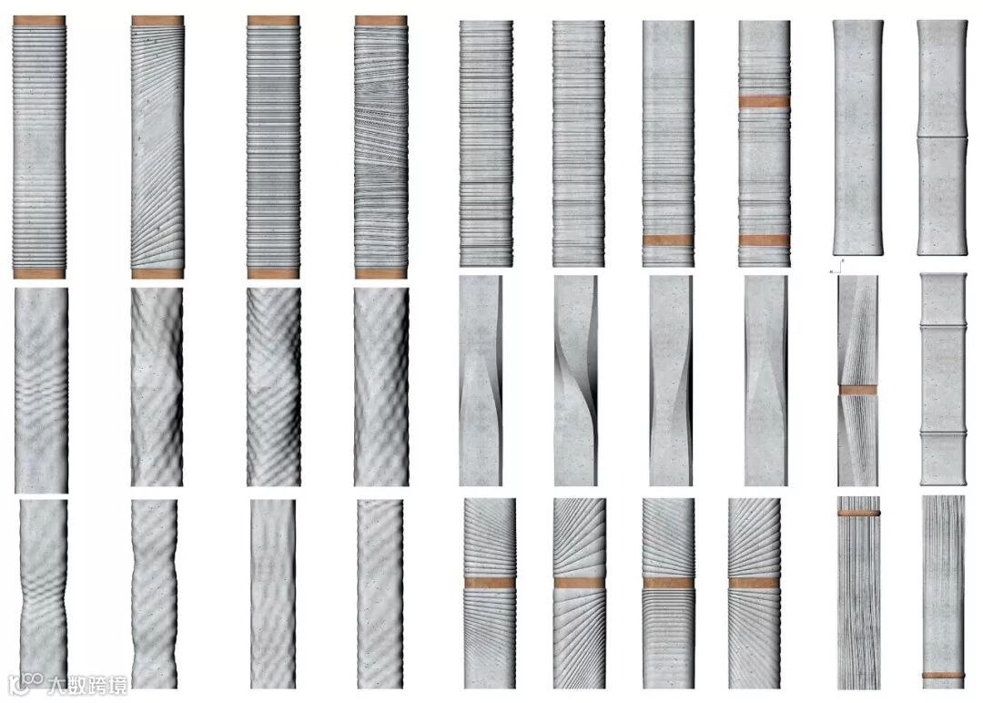 柱子表面采用起伏的波纹式设计