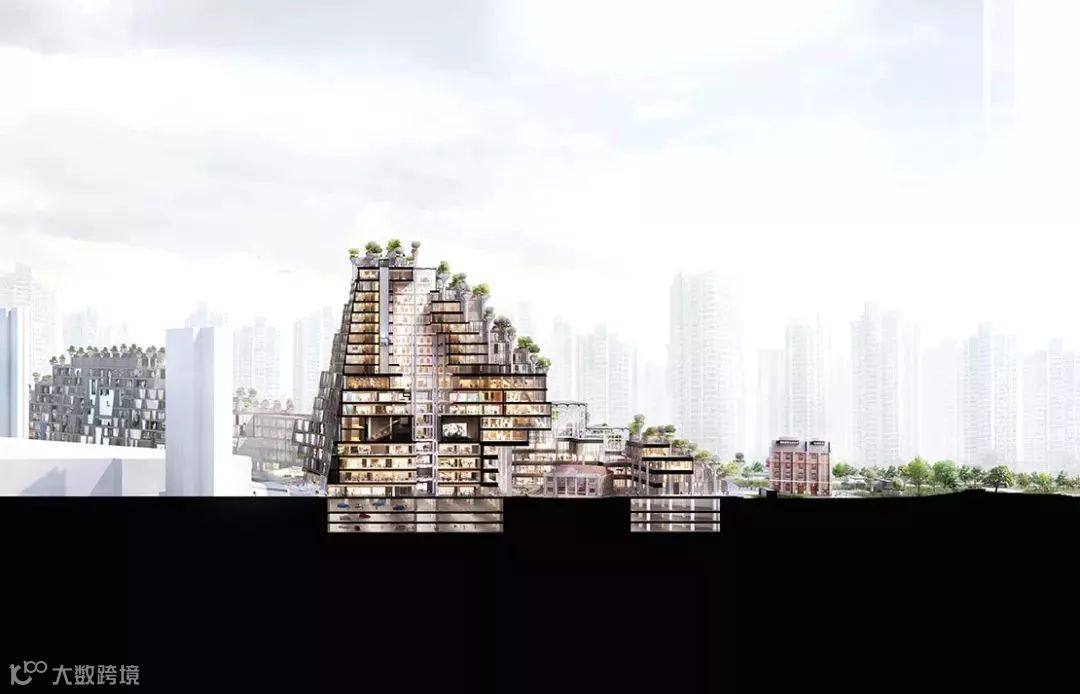 因此,我们用了将近1000座楼体对其进行组合填充。”