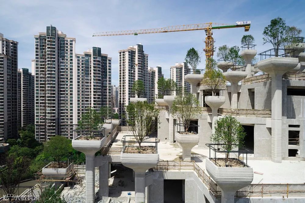 近千根清水混凝土花盆柱从几百个平台中伸出