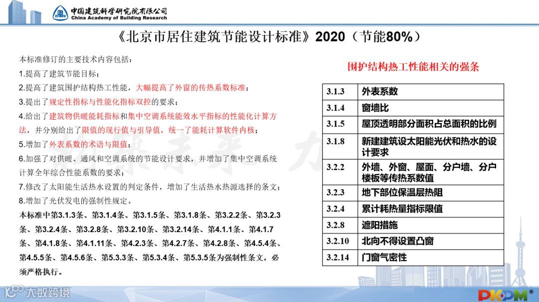 PKPM建筑节能设计分析软件,已经完全实现了北京80%节能率标准的“规定性指标控制”及“建筑能耗指标计算”双重控制的严格要求。
