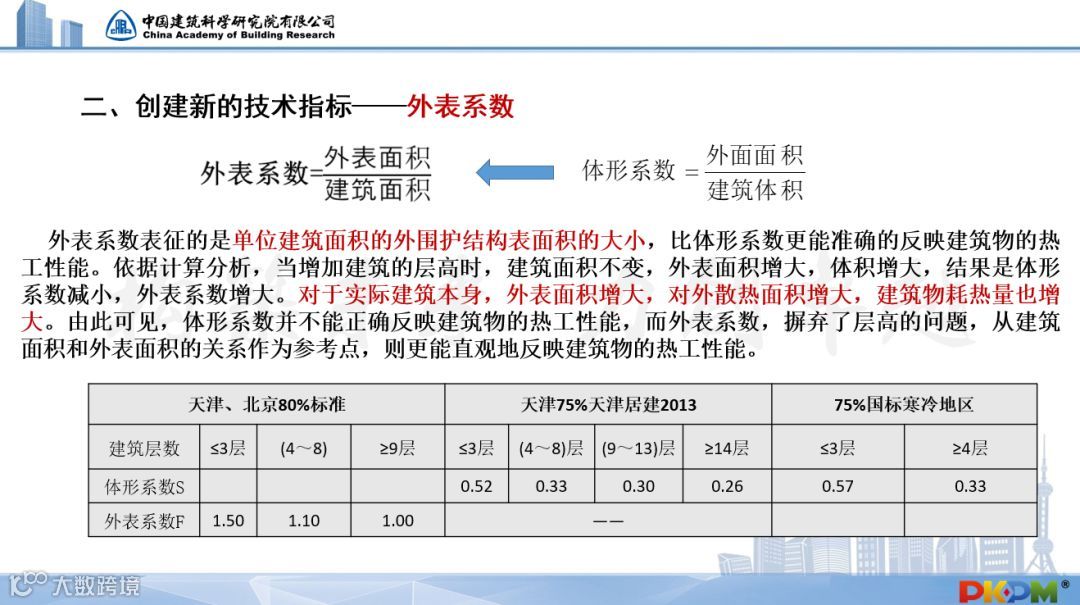 本次修编对建筑物的热工性能和能耗指标采用外表系数进行分类且双重控制,取消了按照层数分级体形系数和热工参数的做法,更为科学合理。