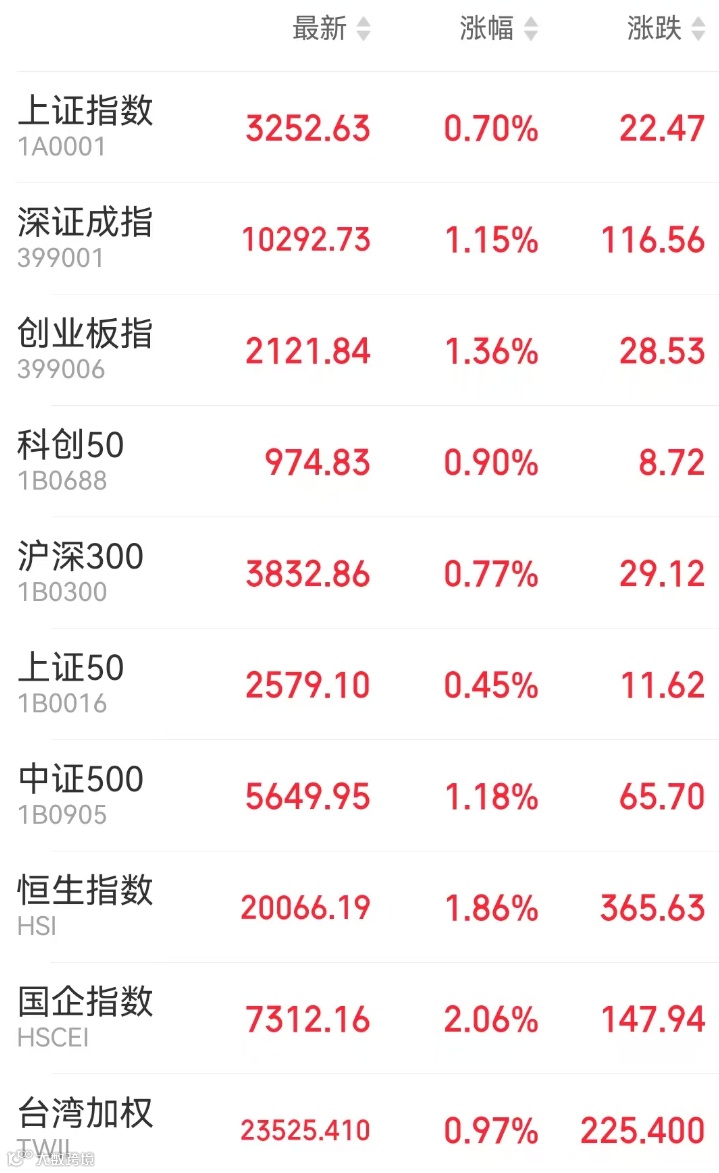 1、A股:上周五A股震荡走强,科技股全线反弹,AI智能体概念集体爆发,大消费、银行板块飘绿。截止收盘,上证指数涨0.7%报3252.63点,深证成指涨1.15%,创业板指涨1.36%,北证50涨0.6%,科创50涨0.9%,万得全A涨1.11%。市场成交额1.23万亿元。上周沪指累涨0.33%,深成指涨1.29%,创业板指涨2.64%。