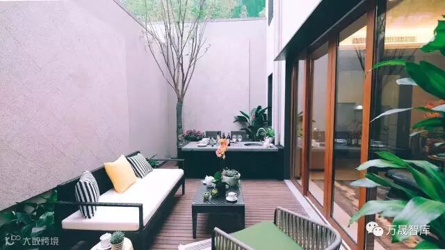 定位普通的项目很难效仿高额成本投入,客户也未必会为此买单,不妨换个思路,从实用出发。如杭万桂语里的院子,木甲板铺装,布置户外沙发与烧烤台,成为室内空间的外延,也受到了客户的一致好评。