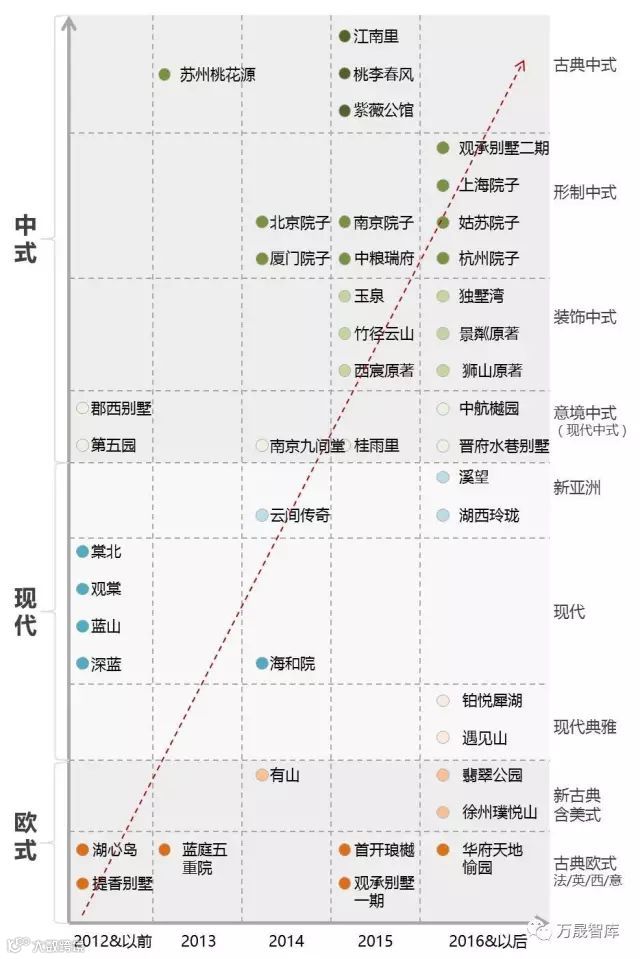 观点四:短期内立面设计趋势是基于现代空间结构、带有传统装饰韵味的典雅装饰方向。现代风格在近期几为空白,可能成为新的突破点。