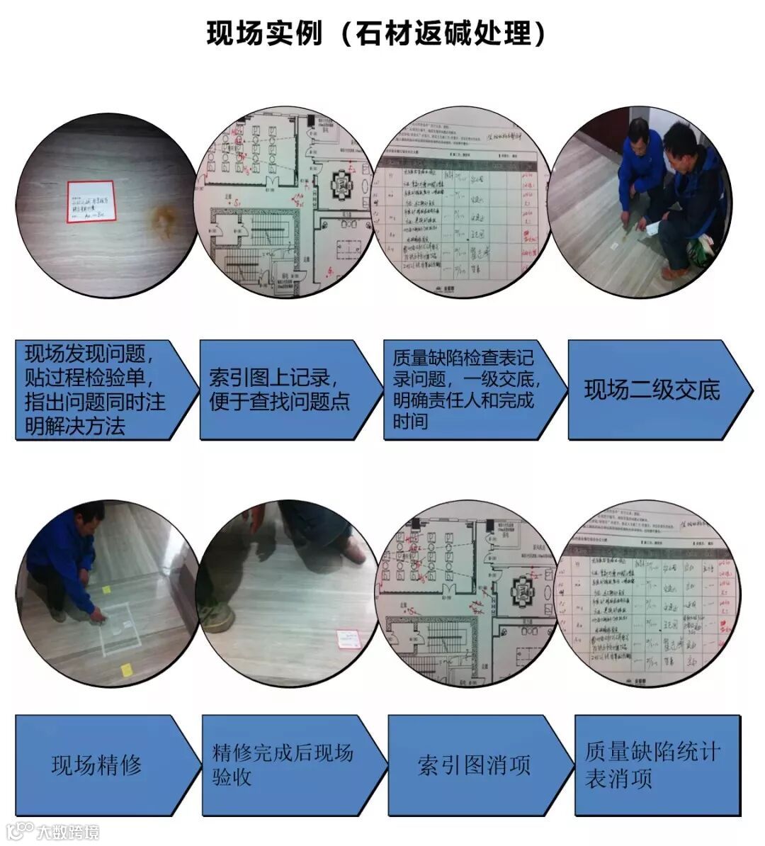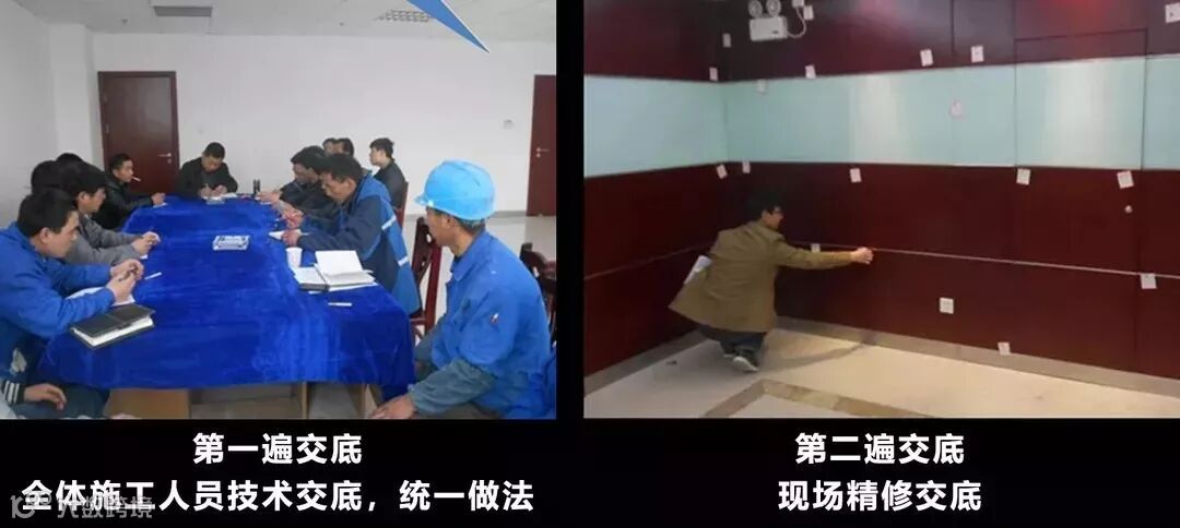 1. 标准明确,样板先行!必须先用实物样板直观的向全员交底,建议每个分项都要做维修前样板展示和指导。