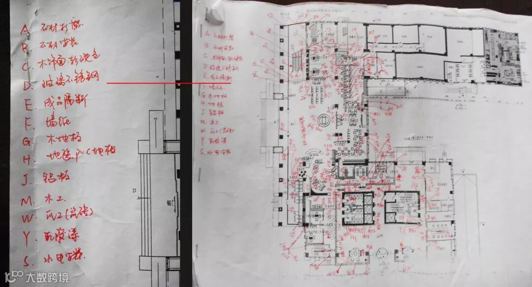 ■ 对需要精修项目进行分类,(如:A.石材、B.木饰面等)